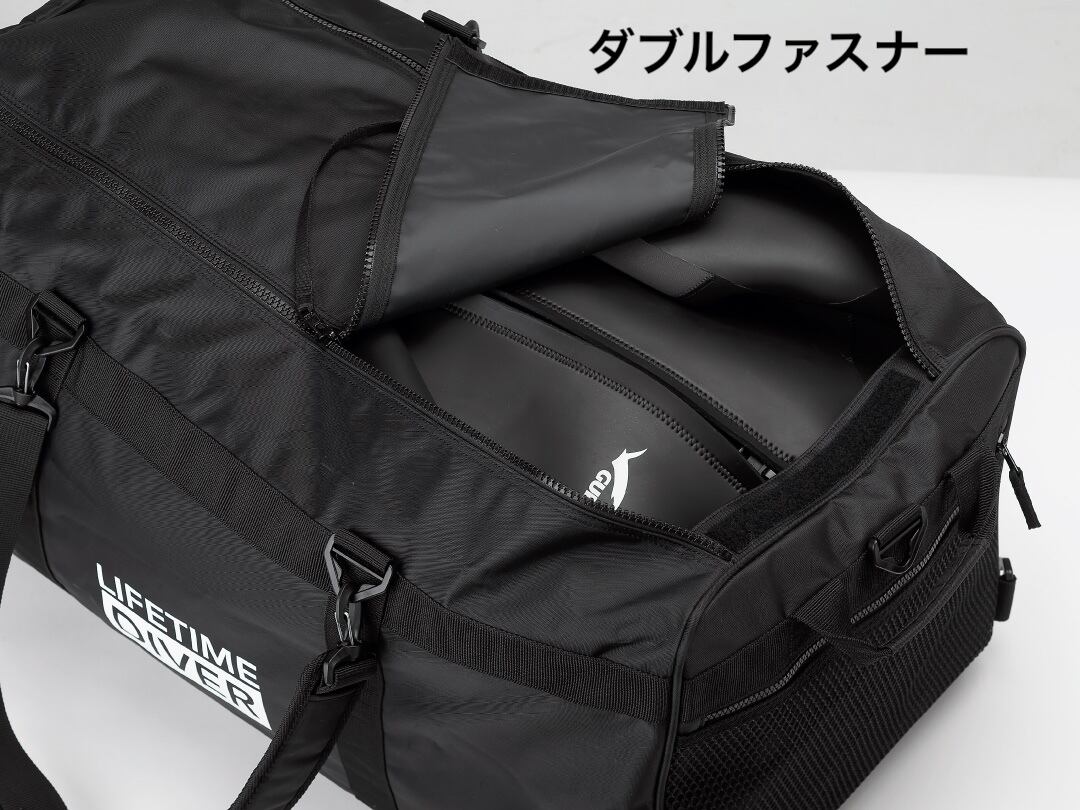 フル器材を収納できる大容量メッシュキャリーバッグ。器材の出し入れがしやすいよう、ダブルファスナー採用で開閉部を大きくとっています。