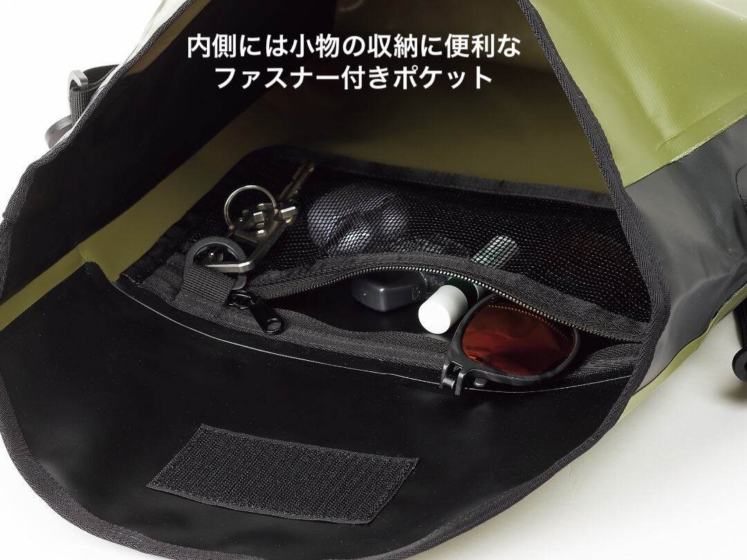内側にファスナー付き小物ポケット付き
