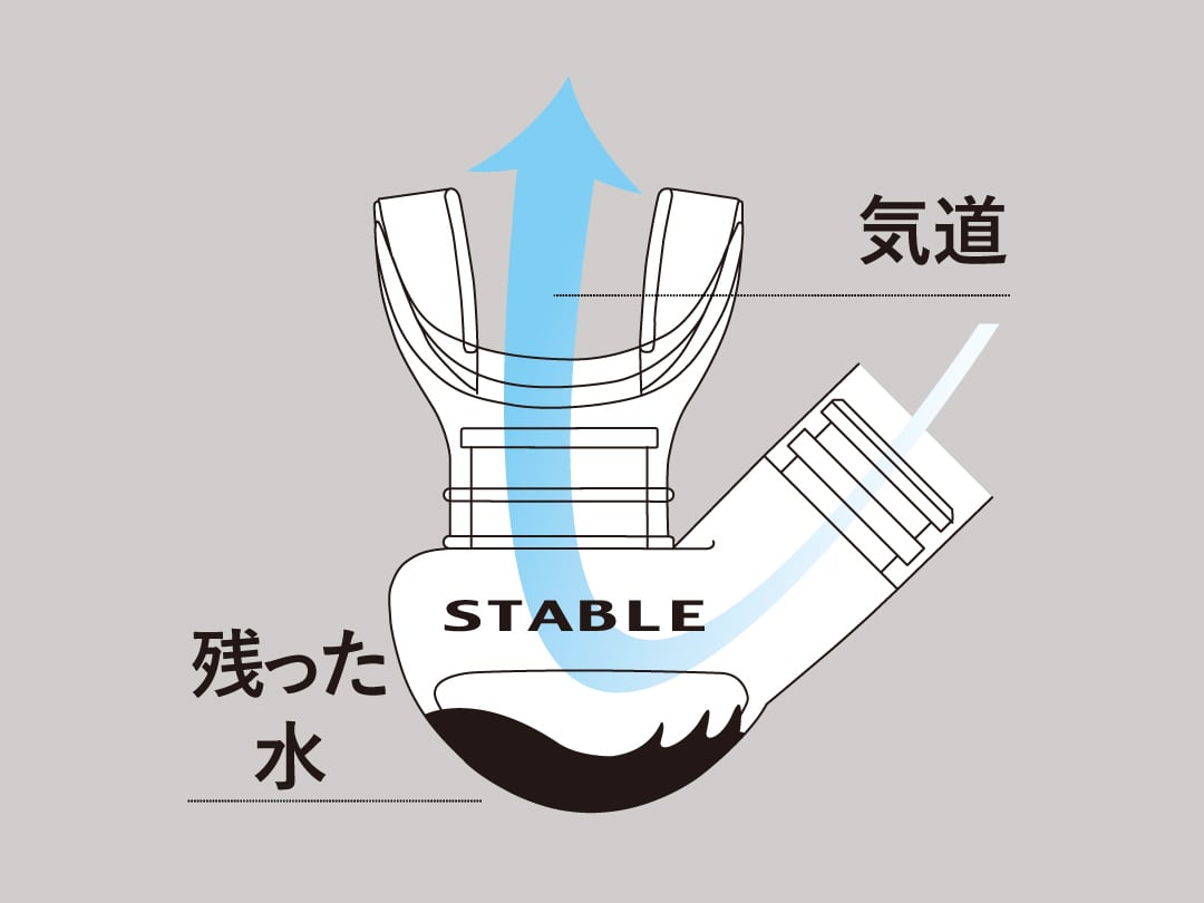 【大型配水室】水が残っても気道を確保。口内への水の逆流を防止します。